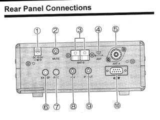 erscheinen und zur einfachen Bedienung verhelfen. Absolut dominierend ist das blau beleuchtete, fast die Die Steuer- und Funktionstasten für die Displaynutzung befinden sich logisch angeordnet direkt unterhalb des Displays, die eigentlichen Empfängerfunktionen werden durch die Tasten und den VFO-Knopf im rechten Teil der Front bedient. Der VFO-Knopf ist übrigens rastend, vermittelt aber beim Empfang von SSB Signalen durch die kleinen Abstimmschritte (20Hz!!!) ein VFO-Gefühl, der Tonleitereffekt ist nur ganz vereinzelt feststellbar.. Die Rückseite des VR5000 stellt seine Verbindungen zur Außenwelt dar. Dort sind die
